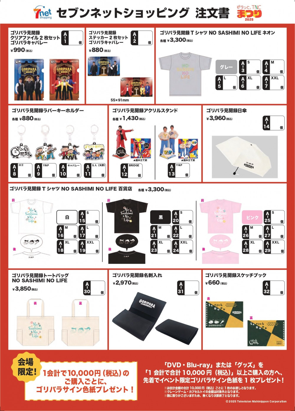 「DVD・Blu-ray」または「グッズ」を「1会計で合計10,000円(税込)」以上ご購入の方へ、先着でイベント限定ゴリパラサイン色紙を1枚プレゼント!