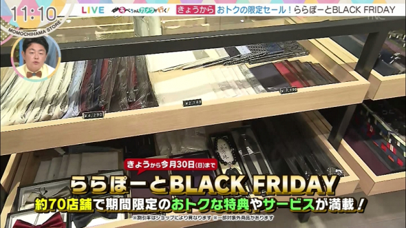 ★生中継でお伝えする「あべちゃんカメラが行く!」。きょうから始まったららぽーと福岡恒例の「ブラックフライデー」の様子をお届け!ファッションアイテムや雑貨など限定のセール品をご紹介します。