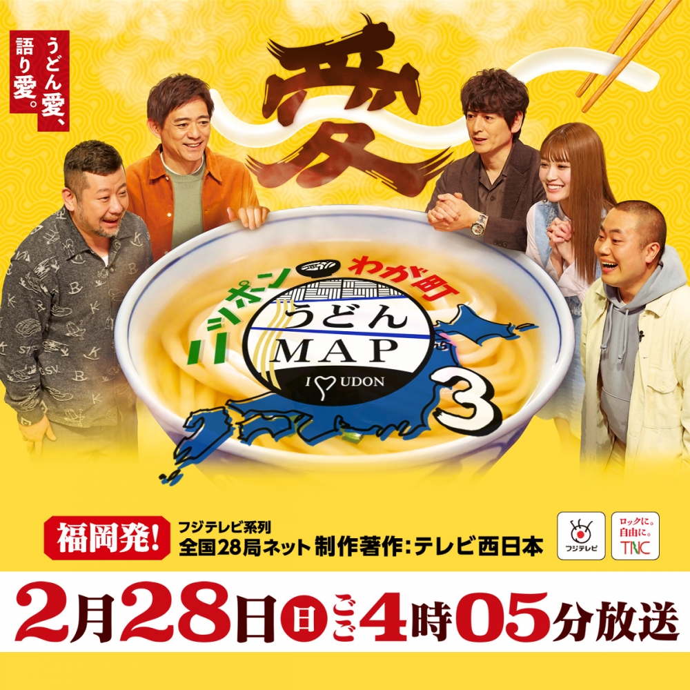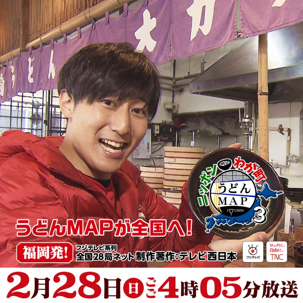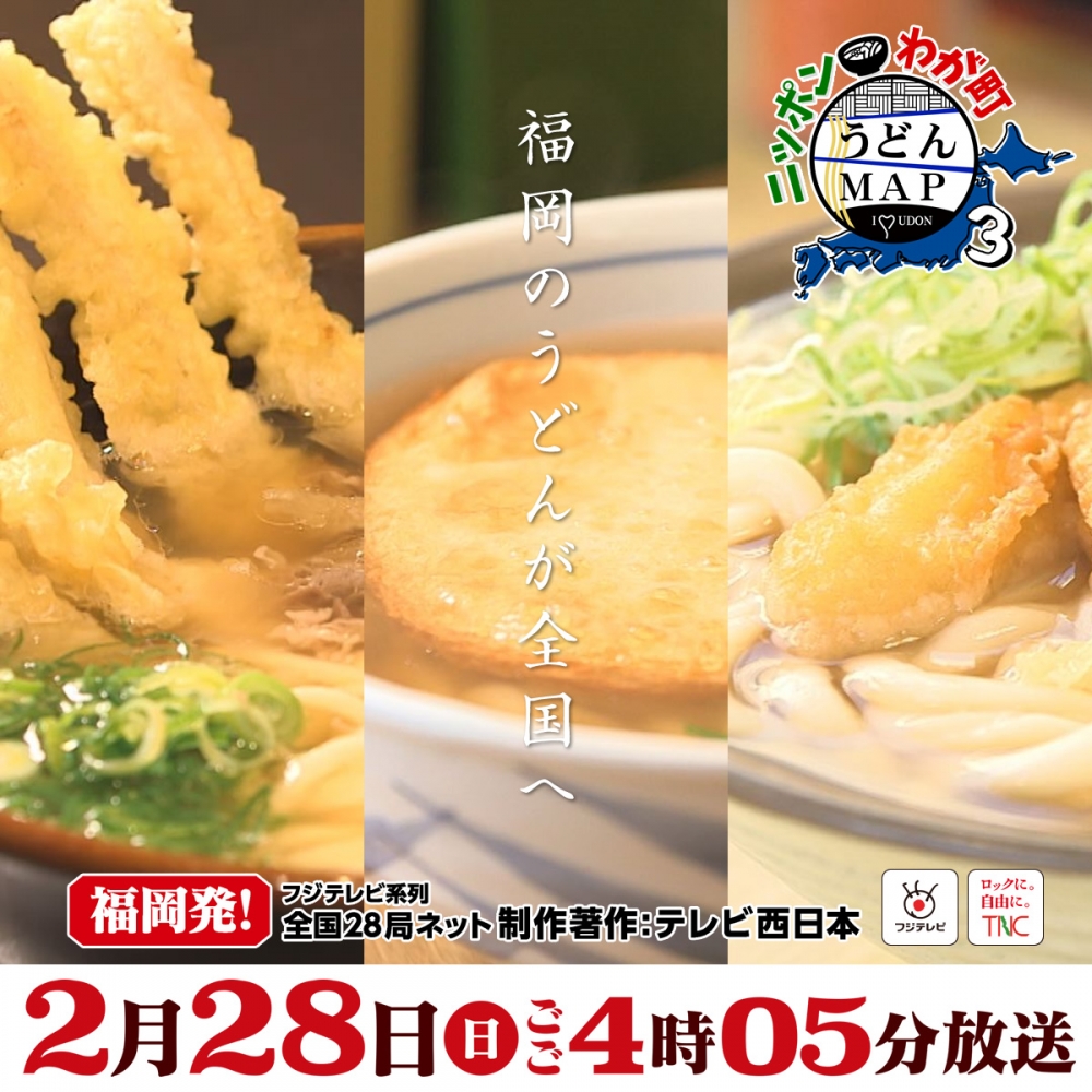 福岡から全国へ発信する2月28日(日)ごご4時5分から放送の「ニッポンわが町うどんMAP3」