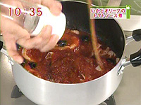 トマトソースを加え、サッと煮て、塩・こしょうで味をととのえる