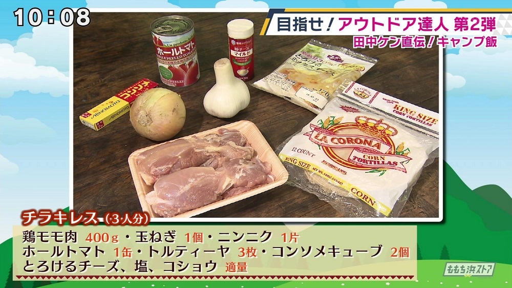 鶏モモ肉 400g 玉ねぎ 1個 ニンニク 1片 ホールトマト 1缶 トルティーヤ 3枚 コンソメキューブ 2個 とろけるチーズ 適量 塩 適量 コショウ 適量