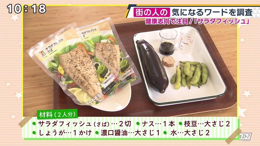 ①ナスをサイコロ状に切り、枝豆と一緒にフライパンへ。