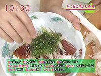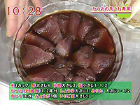 かつおは5ミリ厚さの薄切りにし、漬け汁に15分ほど漬け込む