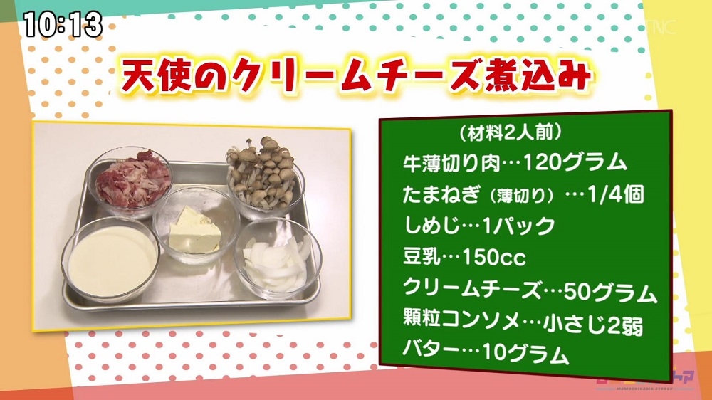牛薄切り肉 120g たまねぎ(薄切り) 1/4個 しめじ 1パック 豆乳 150cc クリームチーズ 50g 顆粒コンソメ 小さじ2弱 バター 10g 塩コショウ 少々