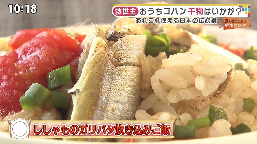 上にししゃもとミニトマトをのせてスイッチを入れ通常通り炊く。