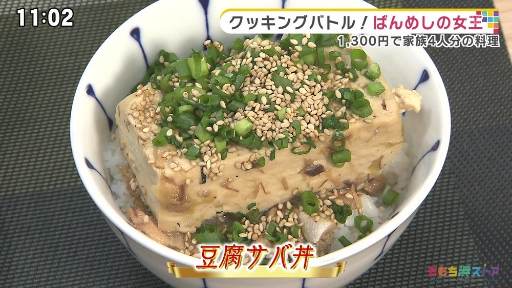 ①鍋にごま油を入れ、スライスしたにんにく、千切りしたしょうが、スライスした長ネギを入れる。 ②①に水、ガラスープの素を入れ、オイスターソース、しょうゆ、みりん、砂糖で味をととのえる。 ③さらにサバ缶を入れて木べらで潰しながらサバを細かくしていく。 ④弱火にして1/3に切った豆腐を入れ、煮汁にとろみが出るまで煮詰める。 ⑤ごはんの上に具材をのせ、一番上に豆腐をのせたら完成。