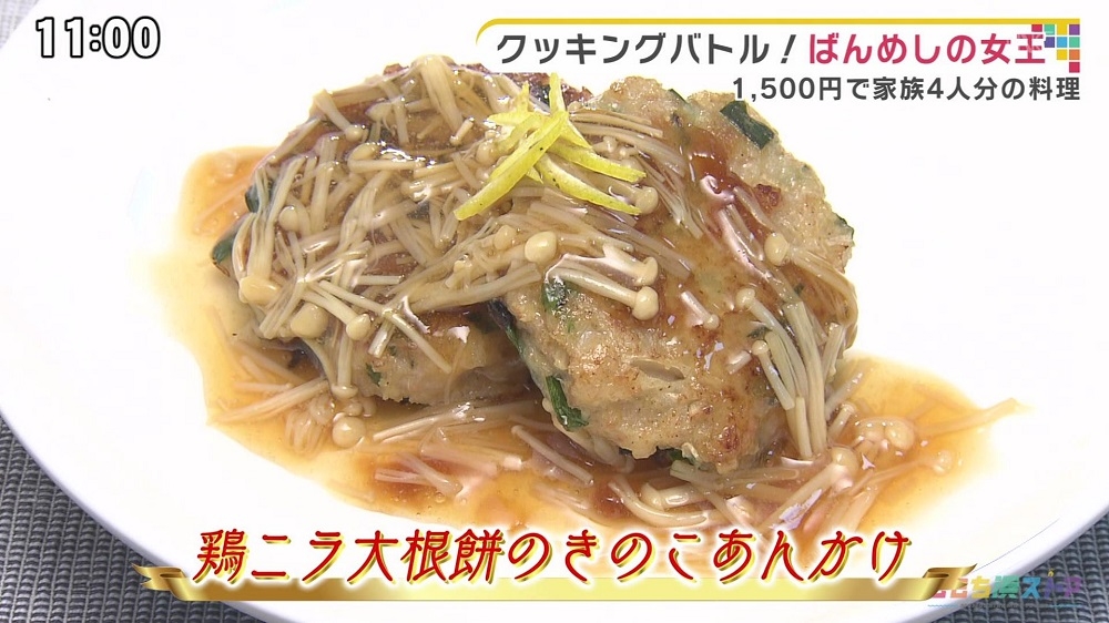 鶏ニラ大根餅のきのこあんかけ