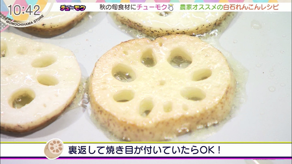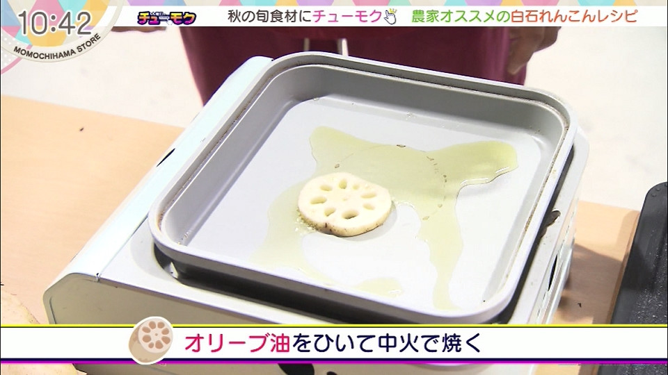 ②オリーブ油をひいて中火で焼く。 裏返して焼き目が付いていたらOK