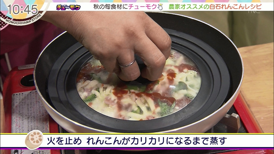 ④火を止め、れんこんがカリカリになるまで蒸す。
