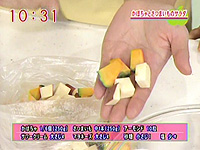 かぼちゃとさつまいもを合わせて重さを量り、ポリ袋に入れ電子レンジで加熱する 100gにつき2分30秒ほど加熱語、熱いうちに塩少々をふる