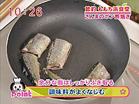 さんまは頭とワタを取ってよく洗い、ペーパータオルで水気を拭き、長さを三つに切る