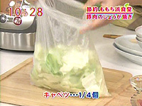 きゃべつは大きくちぎり、ポリ袋に入れ、4分30秒電子レンジにかける