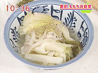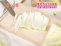 白菜は5センチ長さに切り、茎の白い部分は縦に細く切る