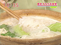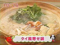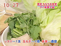 最後にゆでたフォーを入れる ☆ポイント☆ 魚介類は加熱しすぎるとかたくなるので、短時間で引き上げる レタスもすぐに引き上げて食べましょう 香菜の根は香りが良いので、捨てずにスープに入れる