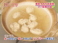 鍋に水と酒、ナンプラー、香菜の根を入れて煮立て、沸騰したら(3)を団子状に丸めながら落とし入れる