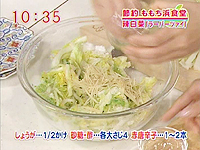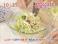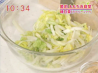 白菜は5センチ長さに切り、さらに1センチ幅の細切りにし、 塩を加えてもみ、しんなりしたら水気を絞る