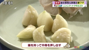 ⑥切り口を下にして軽く振り、中身を押し出す -
