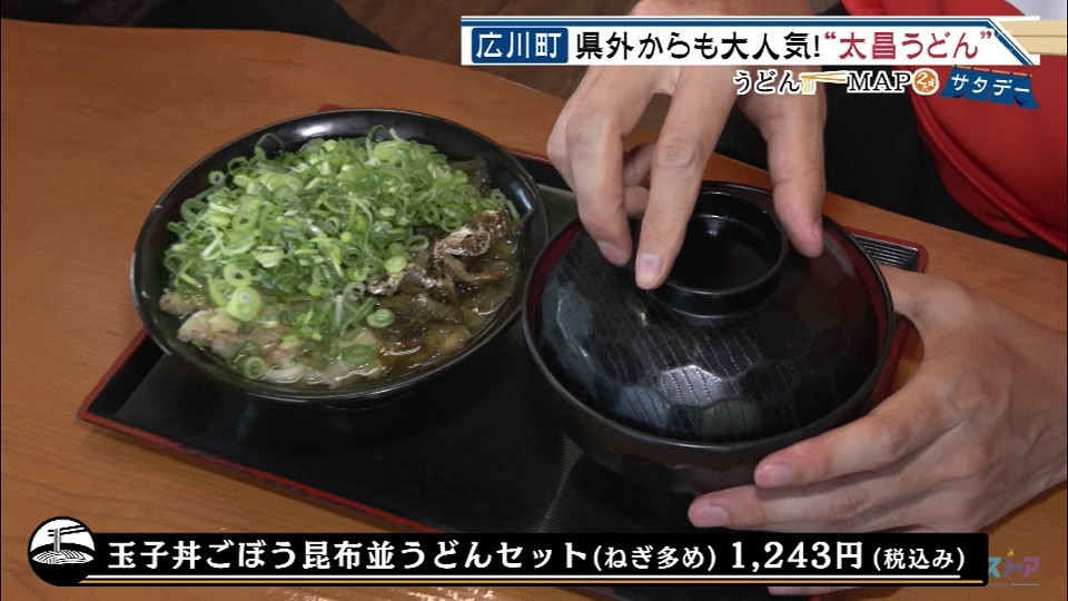 玉子丼ごぼう昆布並うどんセット(ねぎ多め) 1243円(税込み)