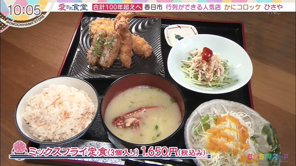 ミックスフライ定食(3個入り) 1650円(税込み)
