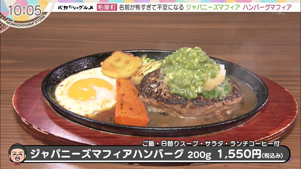 【住所】福岡県糟屋郡粕屋町仲原2820-3 イタリアンマフィアハンバーグ 200g 1550円(税込み) *バカだなぁグルメにて紹介