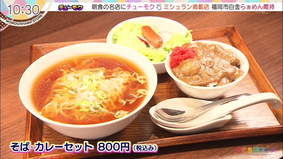 【住所】福岡市中央区白金1-10-5 そば・カレーセット 800円(税込み) 肉粥定食 700円(税込み) *木曜日のチューモクにて紹介