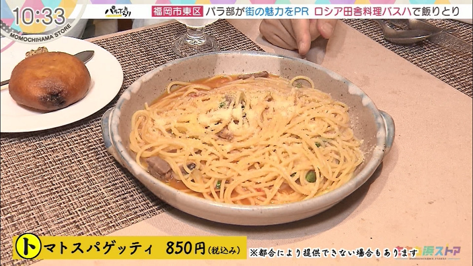 【住所】福岡市東区3-12-8 【営業時間】11:00~22:00 【定休日】月曜 トマトスパゲッティ 850円(税込み) *都合により提供できない場合もあります。 *パラぶらりにて紹介
