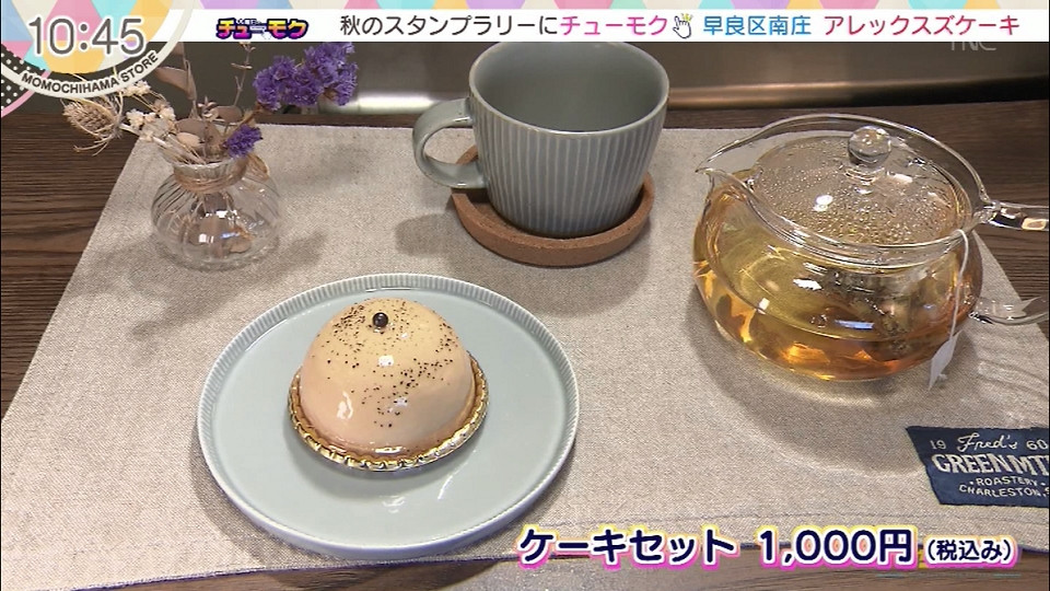 【住所】福岡市早良区南庄1-8-18 ケーキセット 1000円(税込み) マカロン 1個300円(税込み) *木曜日のチューモクにて紹介