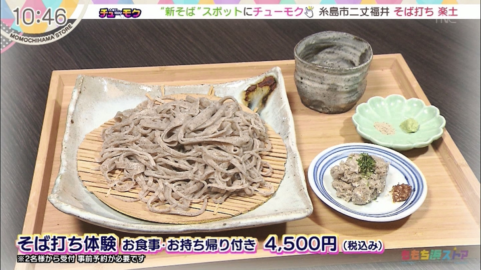 【住所】糸島市二丈福井2850 そば打ち体験 お食事・お持ち帰り付き 4500円(税込み) *2名様から受付 事前予約が必要です。 *木曜日のチューモクにて紹介