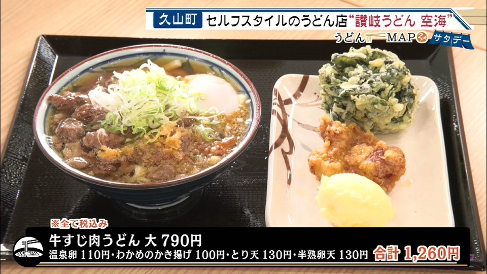 牛すじ肉うどん 大 790円ほか合計1260円(税込み)