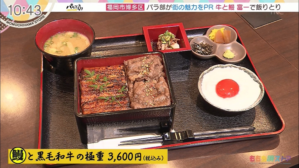 【住所】福岡市博多区美野島1-11-11 【営業時間】10:30~20:00 【定休日】月曜 鰻と黒毛和牛の極重 3600円(税込み) *パラぶらりにて紹介