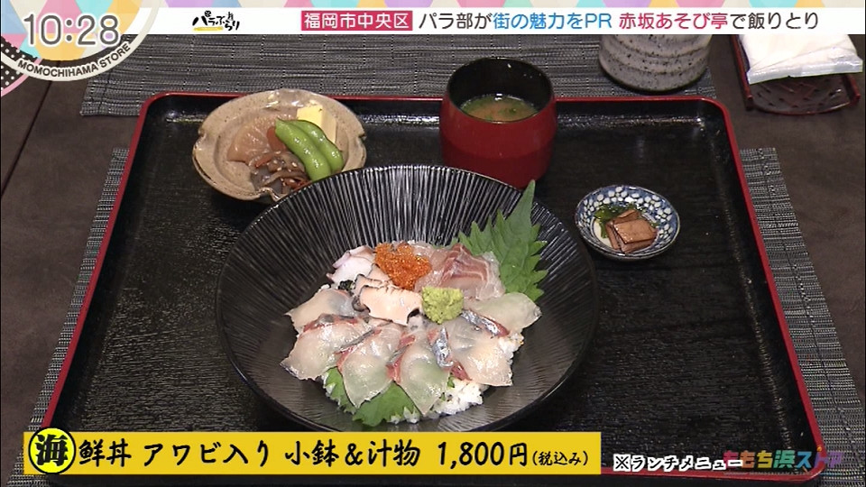 海鮮丼 アワビ入り 小鉢&汁物 1800円(税込み)