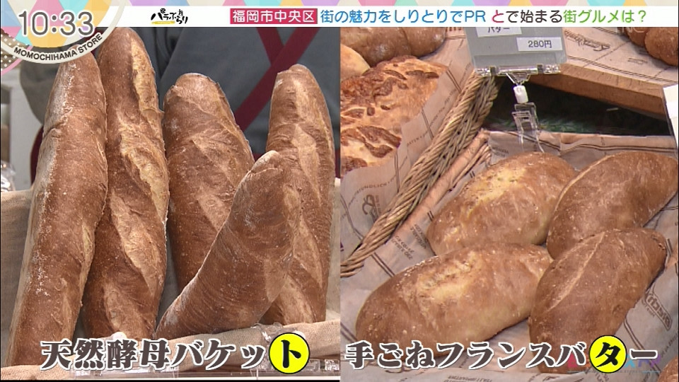 【住所】福岡市中央区港2-15-5 【営業時間】7:00~17:00 【定休日】お盆・正月・水曜 天然酵母バケット 320円(税込み) *パラぶらりにて紹介