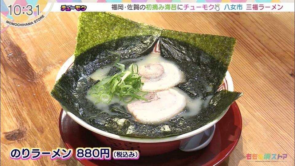 【住所】八女市蒲原70-1 のりラーメン 880円(税込み) *木曜日のチューモクにて紹介