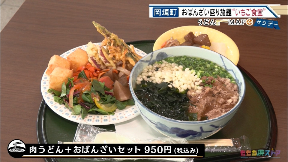 肉うどん+おばんざいセット 950円(税込み)