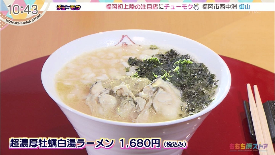 【住所】福岡市中央区西中洲1-4 超濃厚牡蠣白湯ラーメン 1680円(税込み) 牡蠣乗せ放題1980円は不定期開催 *木曜日のチューモクにて紹介