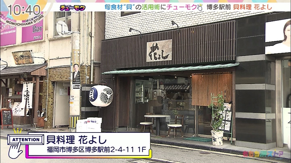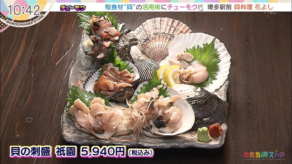 【住所】福岡市博多区博多駅前2-4-11 貝の刺盛 祇園 5940円(税込み) 貝のポテサラ 990円(税込み) 貝のチヂミ 1480円(税込み) *木曜日のチューモクにて紹介